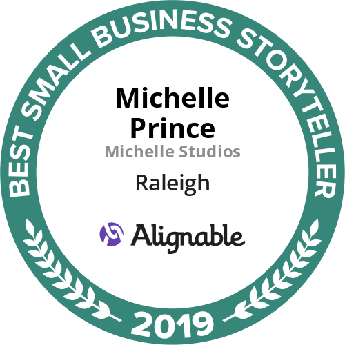 My portrait studio in Raleigh NC was recognized by Alignable in October of this year and I wanted to share with my fans on my site.   In October I opened my email to find this.   Raleigh’s Best Small Business Storyteller for 2019 is Michelle Prince. Thank you so much Alignable staff for choosing my story. I was actually surprised and impressed when I heard you reviewed thousands of stories and then chose mine.  As you might imagine all social media coverage of a small business is valuable and I am grateful.